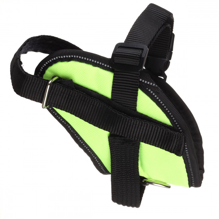 Регулируемая нагрудная шлейка для собак - крепкий и надежный аксессуар, который нужен каждому хозяину, у которого есть собака. Дизайн шлейки выполнен в зеленом цвете с черными регулируемыми ремешками, что облегчает прогулку. Шлейка является частью амуниции и снаряжения для собак, необходимого для использования во время прогулок, дрессировок и соревнований.