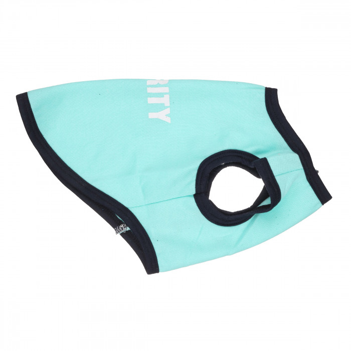 Одежда для собак. Майка для собак на флисовой основе. Она защитит вашего питомца от прямых солнечных лучей и будет удобной в прохладную погоду. Майка выполнена в нежно-голубом цвете с черной окантовкой, что смотрится очень гармонично. Благодаря эластичной ткани её легко надевать и снимать, и животное чувствует себя при этом комфортно. Этот аксессуар сделает образ вашего питомца ярче и добавит стиля в обычные прогулки.