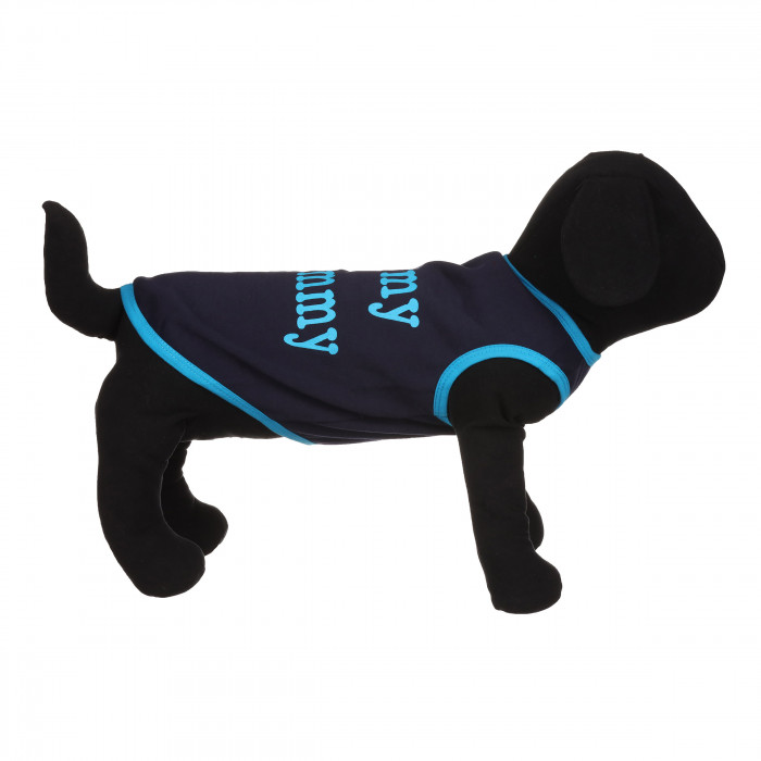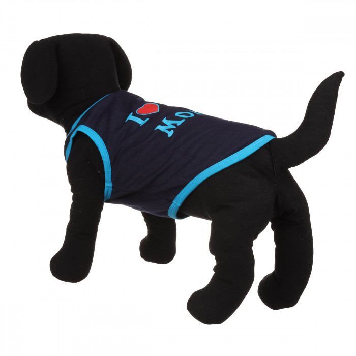 Одежда для собак. Майка для собак станет хорошим дополнением к гардеробу вашего питомца. Её можно надевать как на обычные прогулки, так и на праздники. Майка выполнена в темно-синем цвете с надписью «Я люблю маму», что помогает выразить любовь к маме. Она придаст вашему питомцу стиль и подчеркнёт его характер. Сделана из флиса, майка мягкая, неприхотливая в уходе и плотно сидит, не мешая движениям.