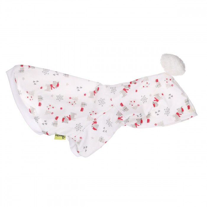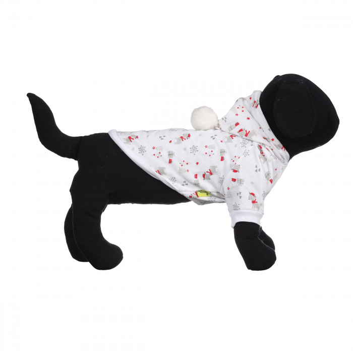 Новогоднее худи для собак, которое станет отличным выбором для рождественских праздников и ужинов в кругу родных и друзей. Дизайн худи выполнен в белом цвете с рождественским узором оленей и капюшоном. Образ подчеркнет милый характер и стиль вашего питомца. Худи изготовлены из качественных флисовых тканей, которые приятны на ощупь и обладают хорошей терморегуляцией, обеспечивая вашему любимцу тепло в прохладные зимние вечера.
