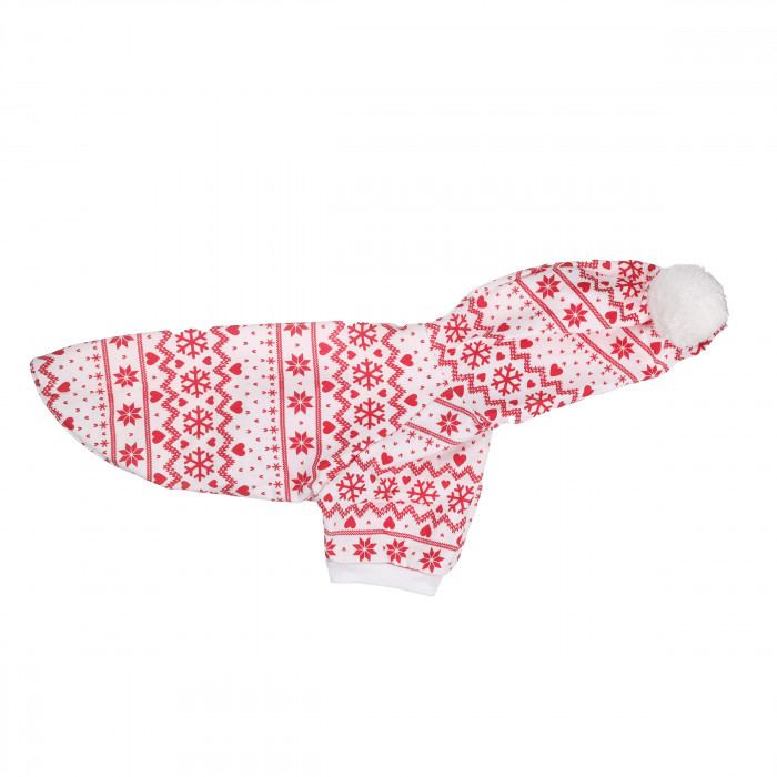 Новогоднее худи для собак сделает вашего любимца частицей сказочного чуда. Дизайн худи выполнен в красно-белых цветах, которые прекрасно сочетаются между собой. Худи обеспечит тепло и комфорт для вашего питомца, так как изготовлено из высококачественных флисовых тканей, не пропускающих холод и ветер. Капюшон защитит уши вашего любимца от непогоды во время прогулок на свежем воздухе.