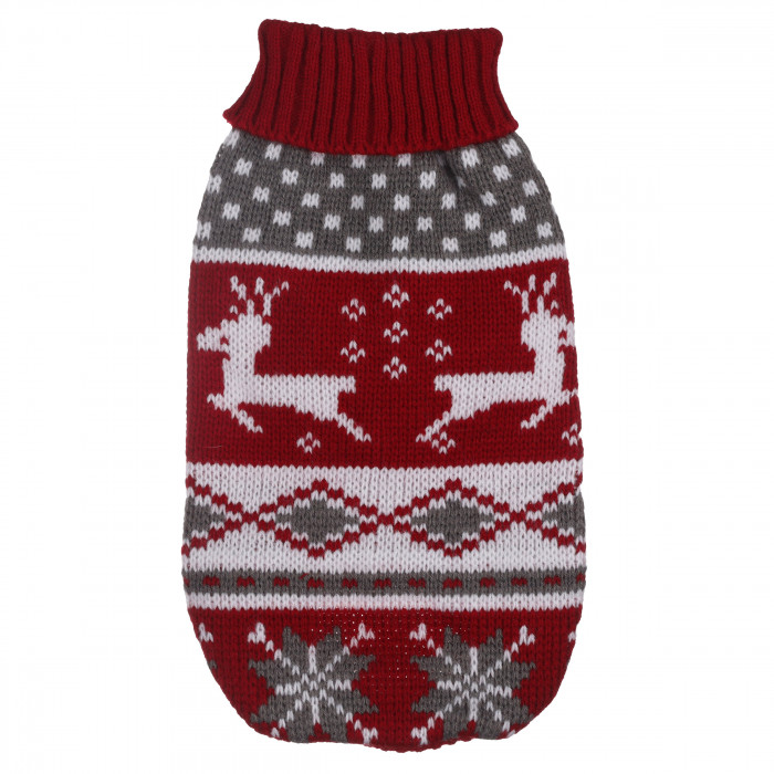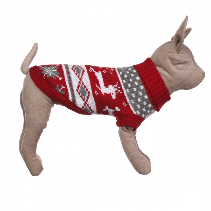 Теплый зимний вязаный акриловый свитер для котов и кошек "Красный олень", размер L