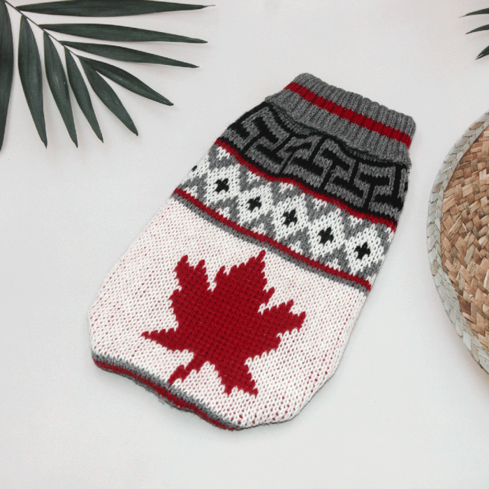 Теплый зимний вязаный акриловый свитер для собак "Серый кленовый лист", размер M