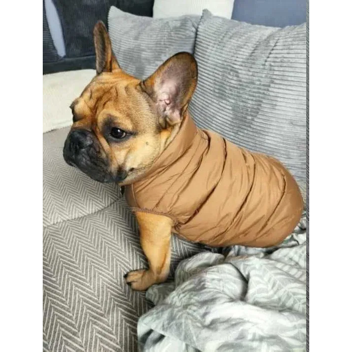 Стеганый жилет коричневого цвета для собак. Преимущество этого жилета в его универсальности: его можно носить как самостоятельную вещь или использовать в качестве слоя под майку, худи или свитшот. Дизайн жилета прост и функционален. Верхний слой выполнен из плащевки, которая не пропускает влагу и защищает от ветра, а внутренняя часть — из флиса, обеспечивающего тепло. Воротник добавляет жилету солидности и защищает шею от сквозняков. Кнопки-застежки делают процесс одевания быстрым и легким. Базовый коричневый цвет легко сочетается с другими аксессуарами. Покупая жилет в нашем магазине, вы можете быть уверены, что ваш любимец будет привлекать внимание на прогулке, чувствуя себя при этом комфортно и уютно.