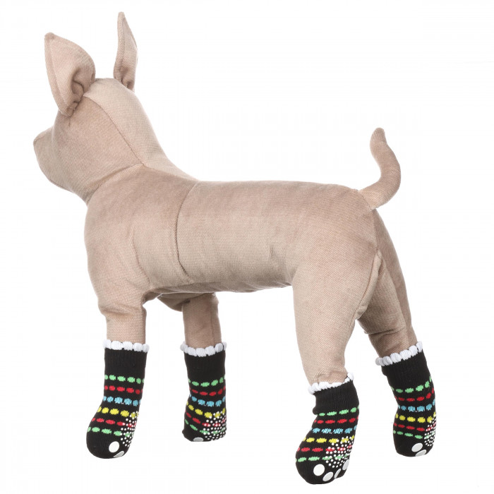 Шкарпетки для котів у чорному кольорі в горошок такі елементи одягу знадобляться під час прогулянок і домашнього використання, щоб захистити лапи тварини від холоду та морозу, а також від пошкоджень.Шкарпетки мають хорошу підошву з силіконовою поверхнею, яка забезпечить якісне та зручне зчеплення з поверхнею землі.Також шкарпетки можна комбінувати з основним одягом і доповнювати образ тварини.Склад: бавовна 80%, спандекс 15%, поліестер 5%.Розмір можна підібрати як для маленького песика 2, так і для песиків великих порід 4. Шкарпетки для домашніх тварин добре тягнуться