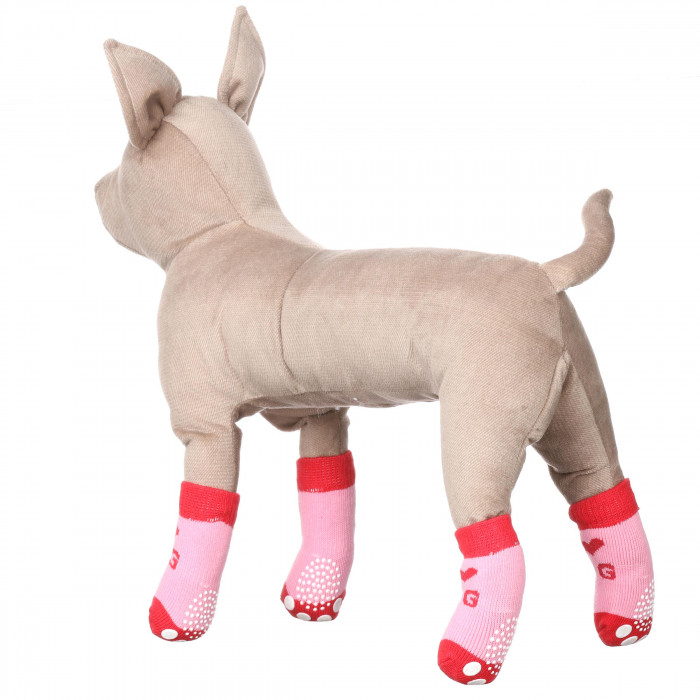 Шкарпетки для домашніх тварин добре тягнуться. Таким аксесуаром можна доповнювати образ тварини і робити його більш яскравим і вишуканим. Шкарпетки забезпечать зручність і захистять лапи вашого улюбленця від ушкоджень і холоду під час прогулянок просто неба в холодну пору року. Склад: бавовна 80%, спандекс 15%, поліестер 5%. Шкарпетки для котів, виготовлені з високоякісних бавовняних матеріалів, які не вибагливі у догляді та не втрачають колір і вигляд після декількох прань. Розмір можна підібрати як для маленького песика 2, так і для песиків великих порід 4. Дизайн шкарпеток виконаний у рожевих кольорах