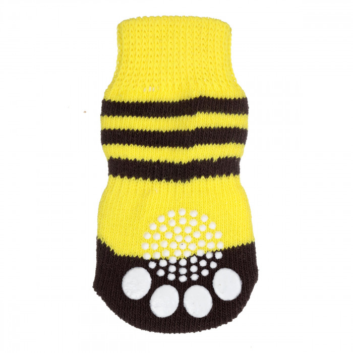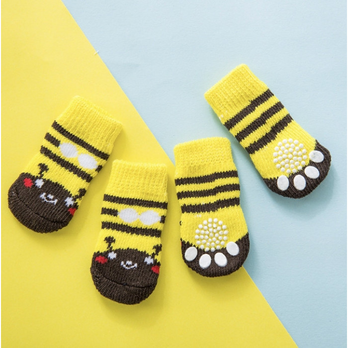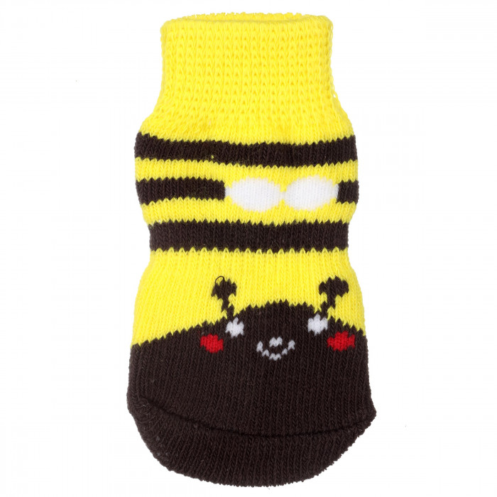 Шкарпетки для собак, які забезпечать зручність і уникнуть пошкодження лап тварини, шкарпетки мають хорошу посадку на лапах тварини.Шкарпетки виготовлені з високоякісних матеріалів, які не вибагливі у догляді і не втрачають колір після декількох прань.Дизайн шкарпеток виконаний в дизайні бджілок, такий аксесуар можна одягати для костюмованих вечірок, святкових заходів, прогулянок і домашнього використання.Склад: бавовна 80%, спандекс 15%, поліестер 5%.Розмір можна підібрати як для маленького песика 2, так і для песиків великих порід 4. Шкарпетки для домашніх тварин добре тягнуться.