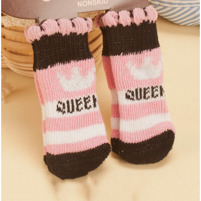 Шкарпетки з антиковзанням для собак (4 шт) бавовна "Корона", рожеві, розмір 3
