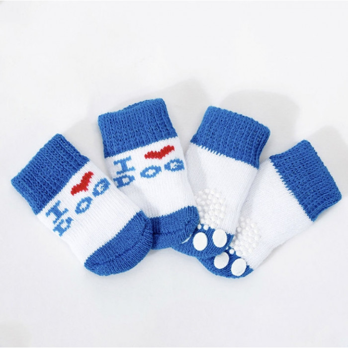Шкарпетки для собак це стильний аксесуар, яким можна доповнити головний образ тварини і додати яскраву родзинку в повсякденне життя. Шкарпетки для собак виготовлені з високоякісних бавовняних матеріалів, які не вибагливі у догляді і не втрачають колір після декількох прань. Їх сміливо можна надягати на щоденні прогулянки. Дизайн шкарпеток виконаний і в біло-синіх кольорах з написом Love. Шкарпетки мають хорошу посадку на лапах тварини забезпечуючи зручність для вашого улюбленця. Склад: бавовна 80%, спандекс 15%, поліестер 5%. Розмір можна підібрати як для маленького песика 2, так і для песиків великих порід 4. Шкарпетки для домашніх тварин добре тягнуться.