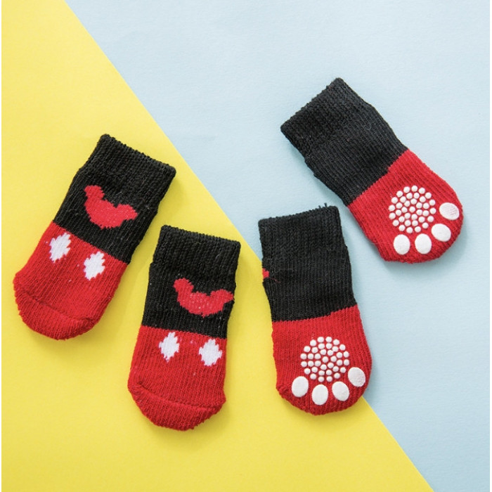 Шкарпетки для собак у стильному мультяшному дизайні, шкарпетки забезпечать зручність і тепло для вашого улюбленця.Шкарпетки виготовлені з високоякісних бавовняних матеріалів, які не вибагливі у догляді та не втрачають колір після декількох прань.Дизайн шкарпеток виконаний у червоно-чорному кольорі з візерунком ведмедя. Шкарпетки мають підошву, яка не ковзатиме по поверхні завдяки силіконовим вставкам.Склад: бавовна 80%, спандекс 15%, поліестер 5%.Розмір можна підібрати як для маленької лапки 2, так і для лапок великих порід 4. Шкарпетки для домашніх тварин добре тягнуться.