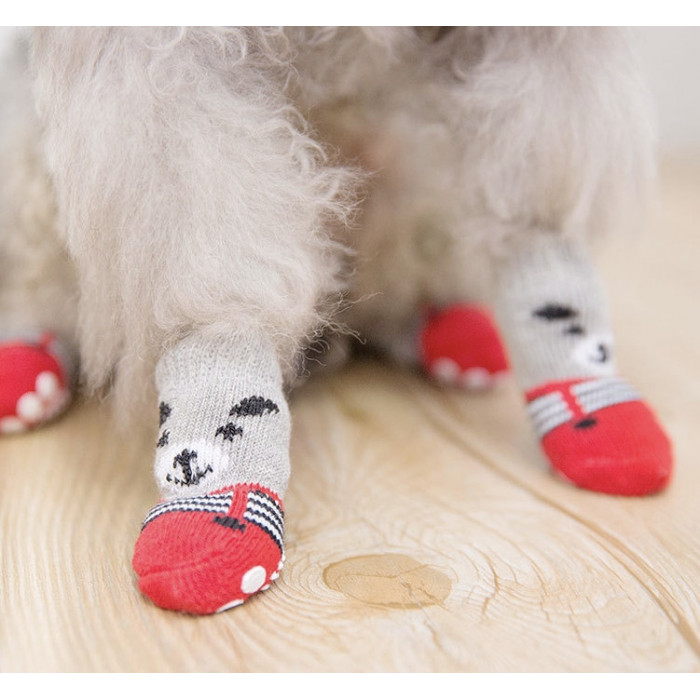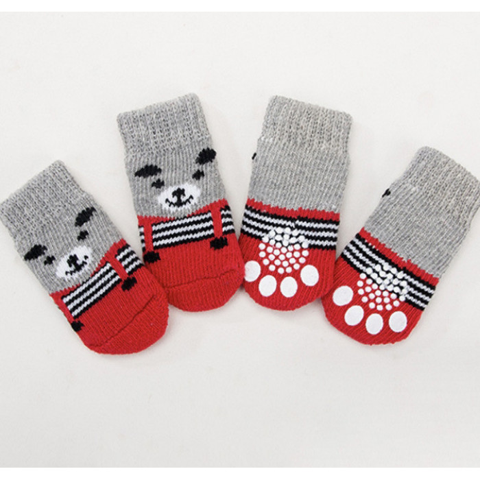Шкарпетки з антиковзанням для собак (4 шт) бавовна "Ведмедик", червоні, розмір 4