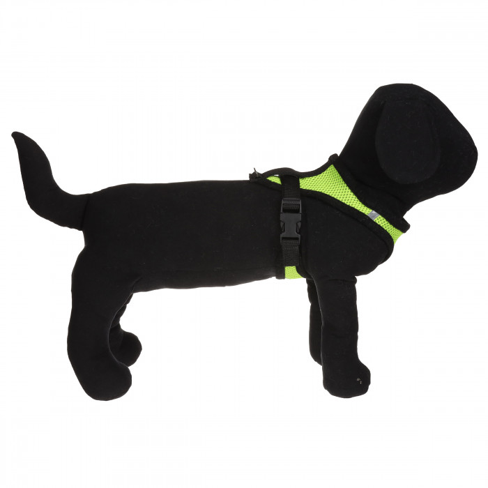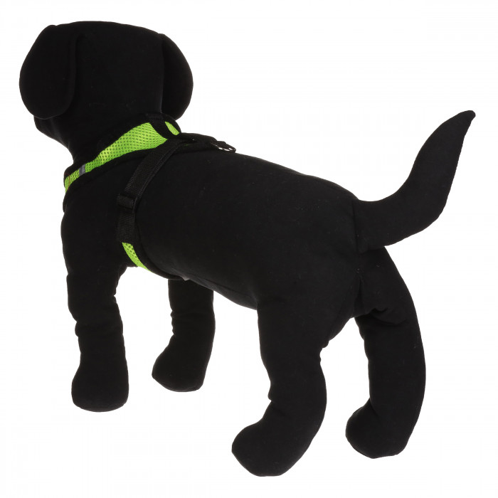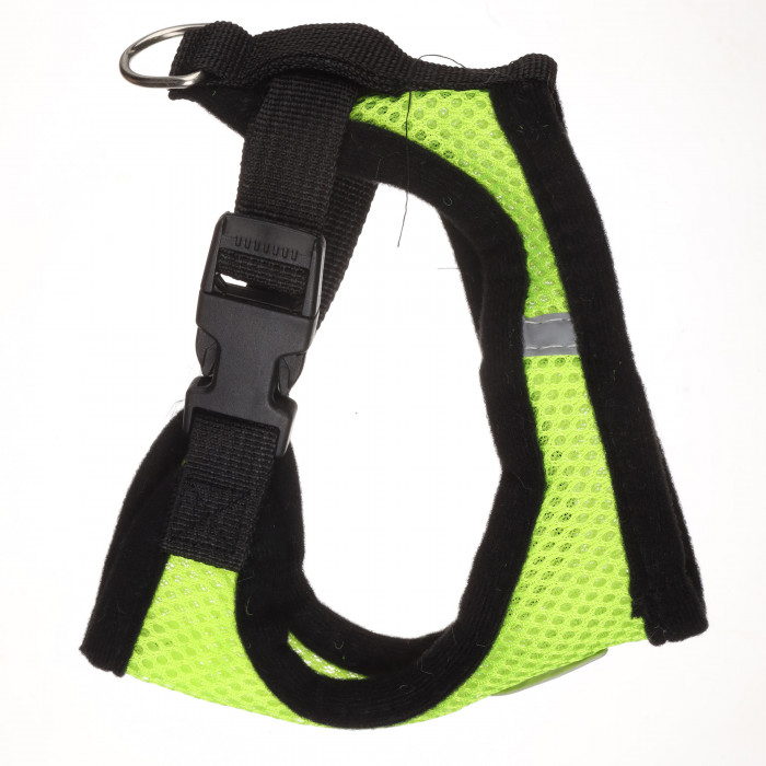 Нагрудна шлейка для собак у доповненні з повідцем у зеленому кольорі. Шлейка такого типу підійде для маленьких і середніх порід собак. Дизайн шлейки виконаний з м'якої сітки зеленого кольору з чорною окантовкою. Сітка відмінно пропускає повітря. Шлейка є частиною амуніції для собак і підходить як для щоденного використання, так і для дресирування та змагань. Це незамінний аксесуар для кожного власника пухнастого улюбленця.