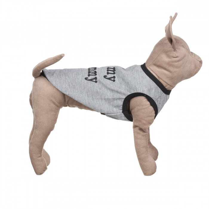 Майка виготовлена з поліестеру на флісі, який приємний до тіла та має гарну посадку на тілі тварини, забезпечуючи зручність. Вона чудово захистить вашого улюбленця від прямих сонячних променів. Майка для котів. Зручна та практична річ у використанні. Дизайн майки виконаний у сірому кольорі з чорними манжетами - це практичне поєднання кольорів, які можна комбінувати з іншими аксесуарами та з образом господаря, створюючи вигляд єдиної команди.
