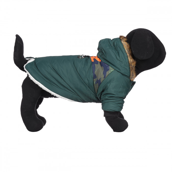 Зимова куртка для собак. Любите гуляти біля моря і в парку в холодну пору року? Тоді цей варіант для вас і вашого улюбленця. Темно-зелена куртка з якісного матеріалу з капюшоном, що оброблений хутром, чудово захистить вашого улюбленця від вітру та дощу. Чому купити куртку для песика варто саме у нас? Переваги придбання куртки у нас: виготовлення з високоякісних матеріалів, сучасний дизайн, найнижчі ринкові ціни, відправка в будь-яке місто країни, різні способи оплати. Також у нас є менеджери, які дадуть відповідь на будь-які питання і допоможуть оформити замовлення. На спинці прикріплено кільце для повідця, наявність якого важлива для зручності господаря.