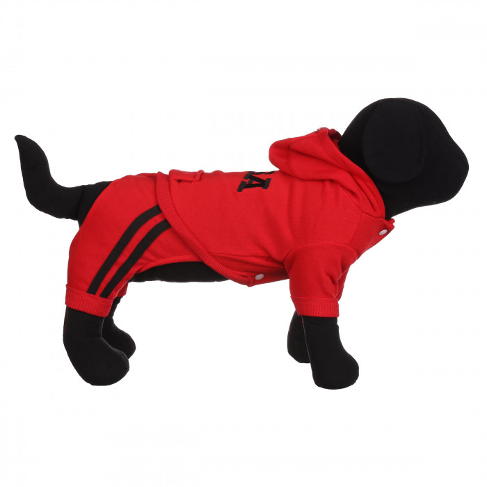 Спортивний костюм комбінезон для собак, який стане гарним доповненням до гардеробу вашого улюбленця. Такий одяг можна комбінувати з іншими аксесуарами та одягати на прогулянки, фотосесії або подорожі.Комбінезон виготовлений з високоякісних матеріалів, які не вибагливі у догляді та не втрачають колір після декількох прань. Комбінезон має якісне пошиття, тому прослужить не один рік.Дизайн комбінезона виконаний в червоному кольорі з чорним принтом, такий образ додасть яскраву родзинку для повсякденного життя.