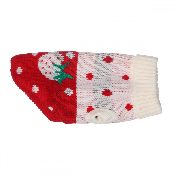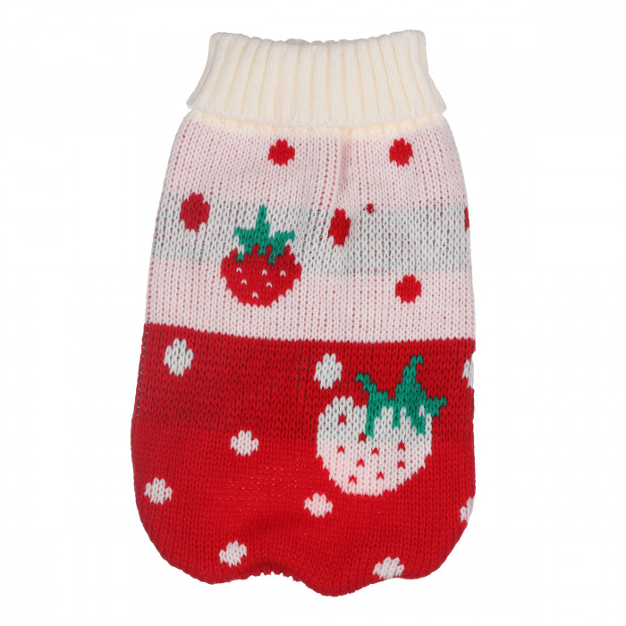 Його хороша посадка забезпечить комфорт вашому улюбленцю під час носіння. Цей аксесуар стане незамінним весняно-осіннім елементом гардероба вашого улюбленця. Дизайн у стилі "червона полуничка" підкреслить милість вашого песика та додасть особливого шарму його образу.Светр виготовлений з високоякісних матеріалів, легких у догляді, які зберігають колір і початковий вигляд навіть після декількох прань. В'язаний акриловий светр для котів - чудовий вибір для утеплення під час прохолодних прогулянок