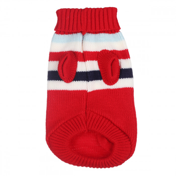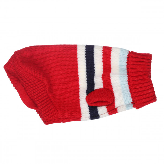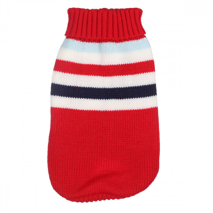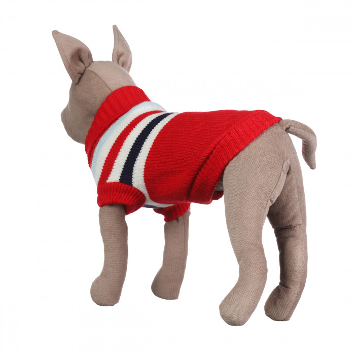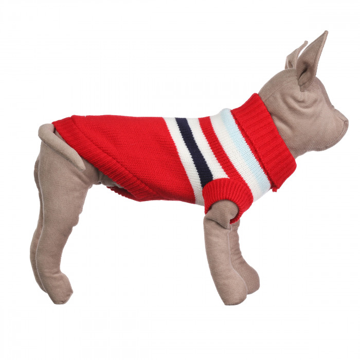 Теплий зимовий в'язаний акриловий светр для котів та кішок "Червоні смуги", розмір L
