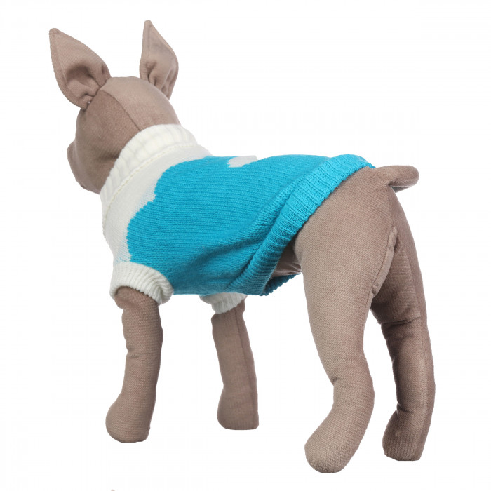 Теплий зимовий в'язаний акриловий светр для котів та кішок "Синє серце", розмір L