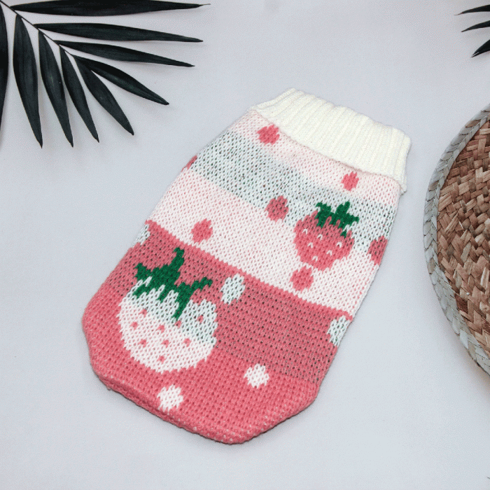 Приємна на дотик річ із красивими тематичними візерунками. Дизайн цього аксесуара виконаний у біло-рожевому кольорі з візерунками полуниці. Такий дизайн красиво підкреслить милий характер тварини та її індивідуальність. Річ виготовлена з високоякісних тканин, які мають хорошу терморегуляцію. Тому надійно забезпечать тепло вашому улюбленцю під час холодних прогулянок.