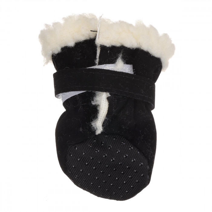 Черевики для собак які захистять лапи вашого улюбленця від холоду та морозу, черевики мають гарну посадку на лапах тварини завдяки якісним застібкам.Черевики виготовлені з високоякісних матеріалів, які не вимогливі у догляді.Дизайн черевиків виконаний у чорному кольорі, такі черевики можна комбінувати з верхнім одягом та вони мають підошву, що не ковзатиме по кризі та буде добре зчіплюватися з поверхнею.